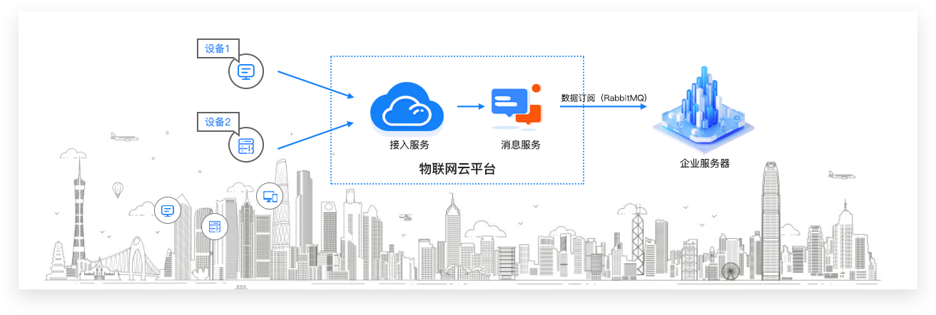 | 数据订阅流转 | 设备接入bwin·必赢物联网平台后,企业服务端可以通过配置服务端订阅,直接订阅产品下多种类型的消息,物联网平台会将产品下所有设备中已订阅类型的消息,转发至您的服务器。 |
